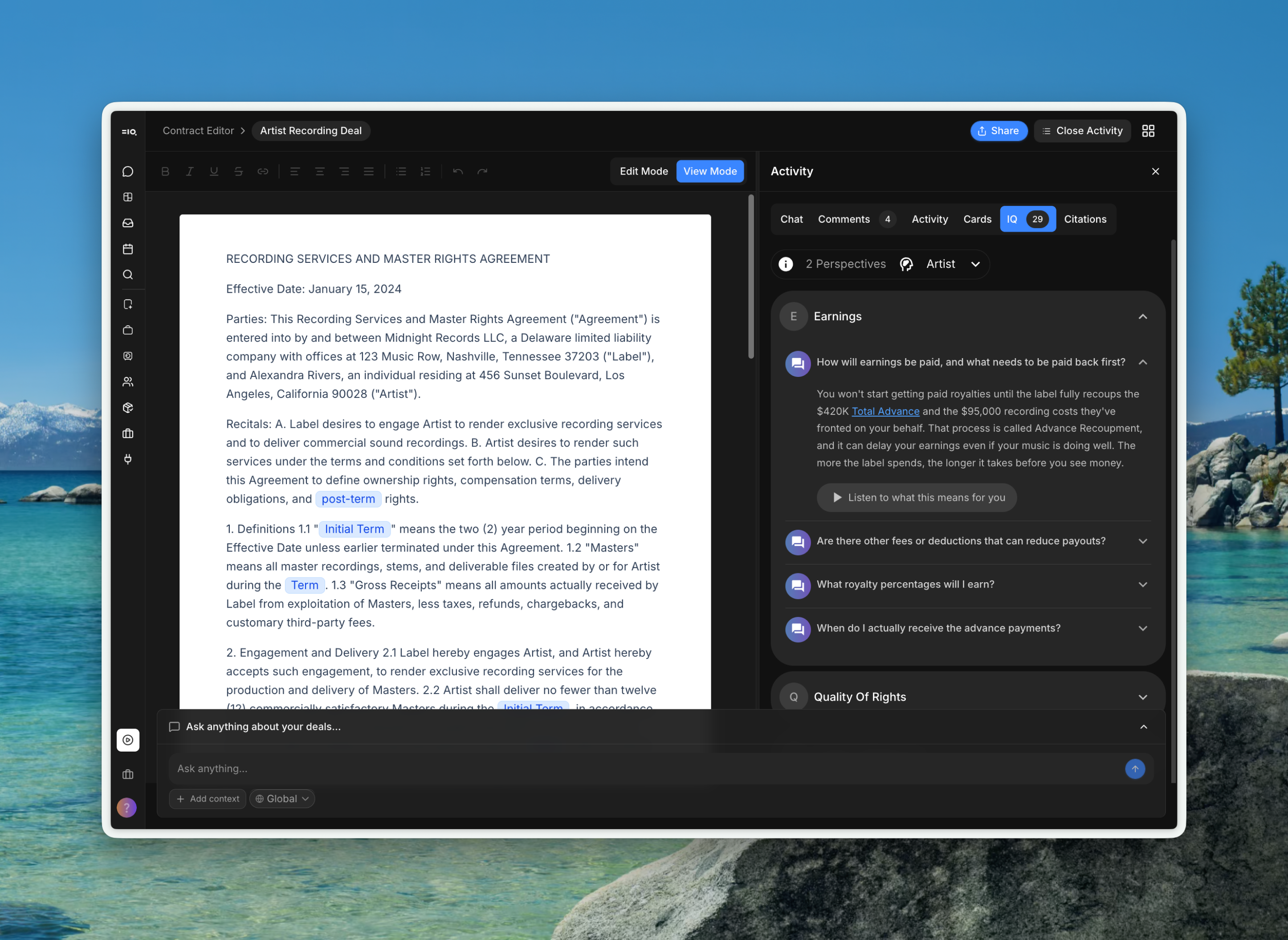 Equal IQ is a AI-powered platform that simplifies contracts into clear, structured insights
