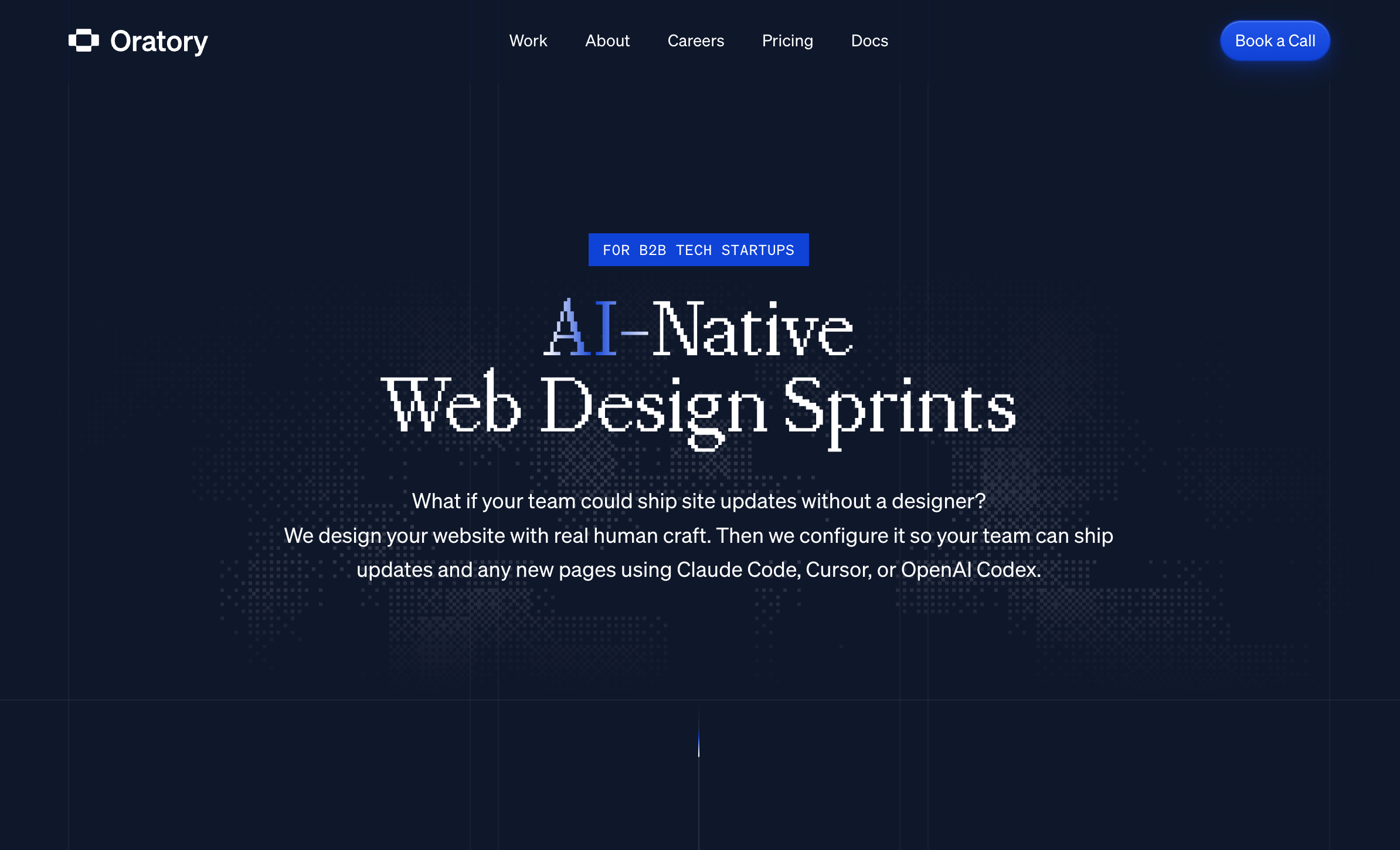 Designed and developed a landing page for Oratory’s AI-Native web design sprint, showcasing a service that combines human-crafted web design, AI-ready component systems, and team training for faster content and page creation.
